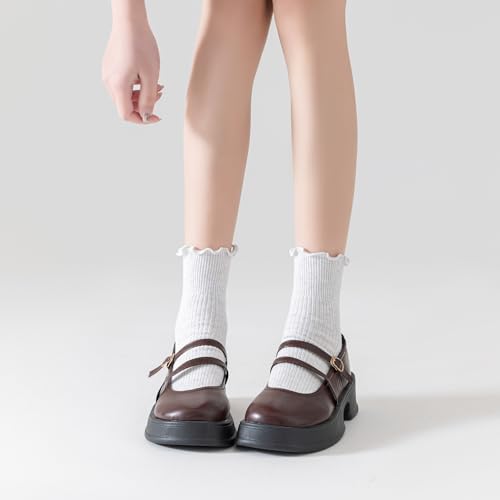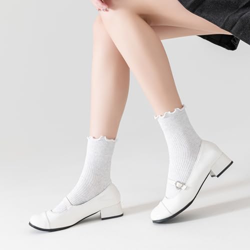 Mcool Mary Women's Ruffle Socks,Turn-Cuff Casual Cute Ankle Warm Cotton Knit Lettuce Frilly White Socks for Women 6 Pack 7