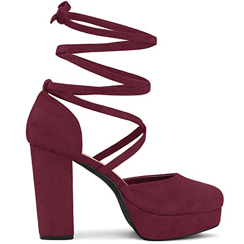 HOT ! Allegra K Women's Platform Block Heel Lace Up Pumps Sandals