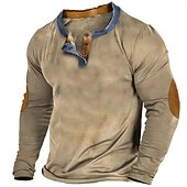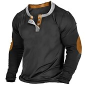 More information about Men's Button T Shirt T Shirt Henley Shirt Tee Top Long Sleeve Henley Spring & Fall Color Block Vintage Designer Basic Patchwork Vacation Street Going out Black khaki Top Tee for Men