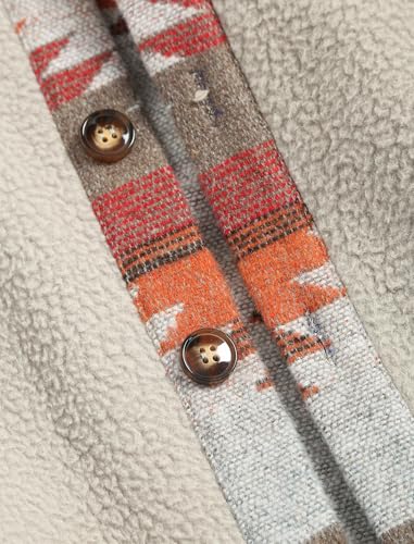 ZAFUL Men's Ethnic Aztec Printed Jacket Coat Flap Pocket Casual Long Sleeve Lightweight Lapel Faux FleeceShacket Top 7