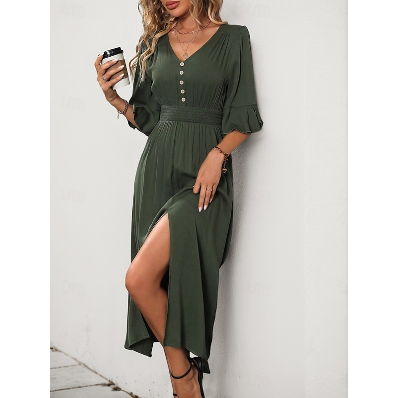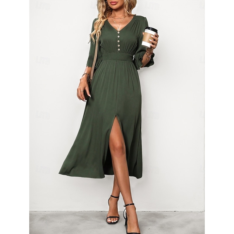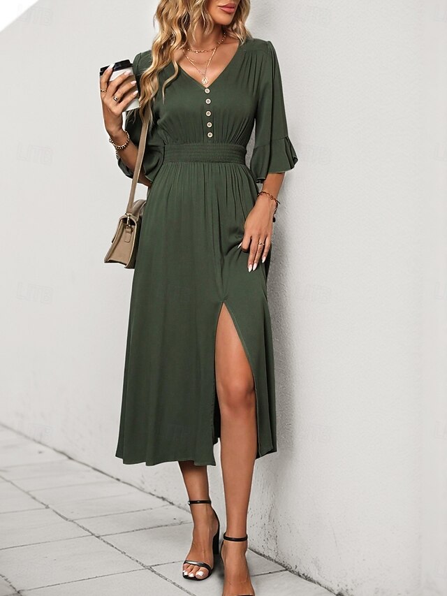 More information about Women's Midi Dress Casual Dress A Line Dress Basic Casual Vacation Daily Regular Fit Plain Half Sleeve V Neck Green Summer