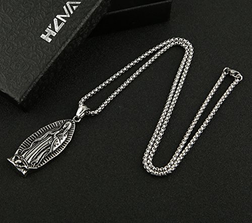 HZMAN Stainless Steel Blessed Mother Mary - Our Lady of Guadalupe Pendant Necklac with Steel Wheat Chain 5