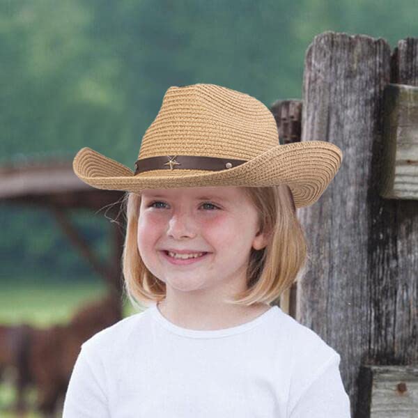 Toddler-Kids Summer-Cowboy-Hats Wide-Brim Sun-Straw-Western-Hat for Boys-Girls 2-7 Yrs 4