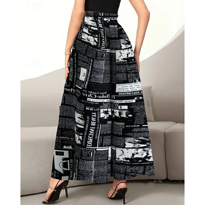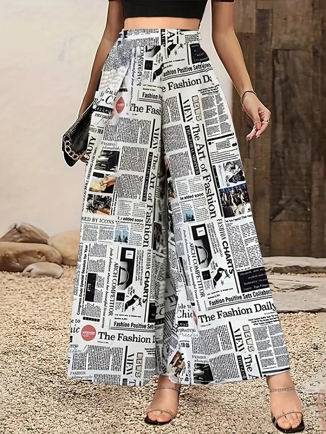 More information about Women's Wide Leg Slacks Streetwear Casual Full Length Natural Flower Elastic Waist Printing Comfy Outdoor Vacation Going out Black White Fall Regular Fit