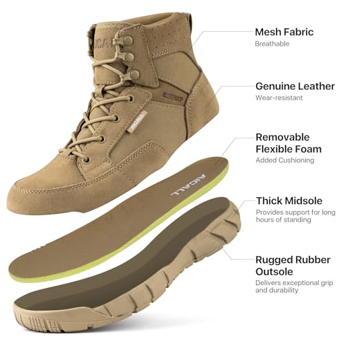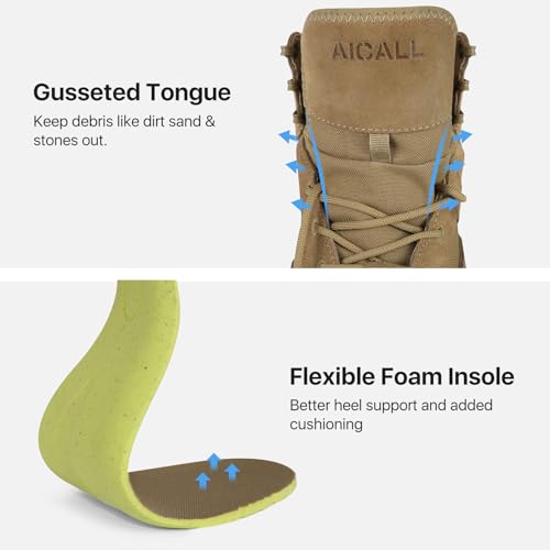 • INDOOR & OUTDOOR BOOTS FOR MEN – Versatile tactical boots built for year-round comfort and reliable support for work, motorcycle riding, law enforcement, hunting, duty, fishing, and outdoor use. Lightweight yet durable for all-day wear. If you're unsure about sizing, please check our size chart and measure your foot. We recommend going half a size up, especially if you wear thick socks or have wider feet. AICALL Hiking boots for men ideal for outdoor activities and daily wear.