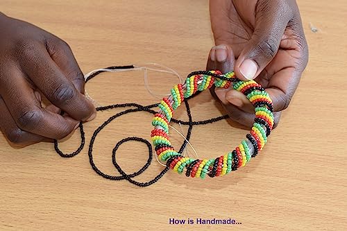 Tembo Crafts Africa - Set of 3 Handmade Bangles for Women - Beaded Bracelets - Boho Jewelry Gifts - Red Green Black - Handmade From Africa 7