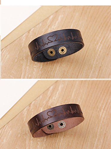 2 x Fashion Leather heartbeat Bracelet Black & Brown Couple bracelets for lovers birthday gift 5