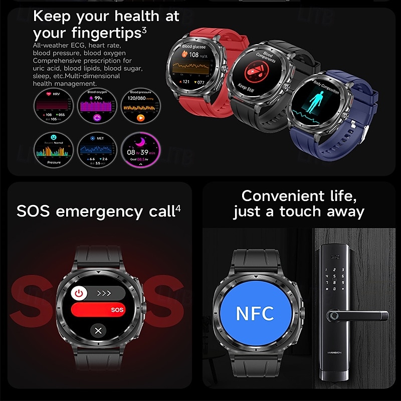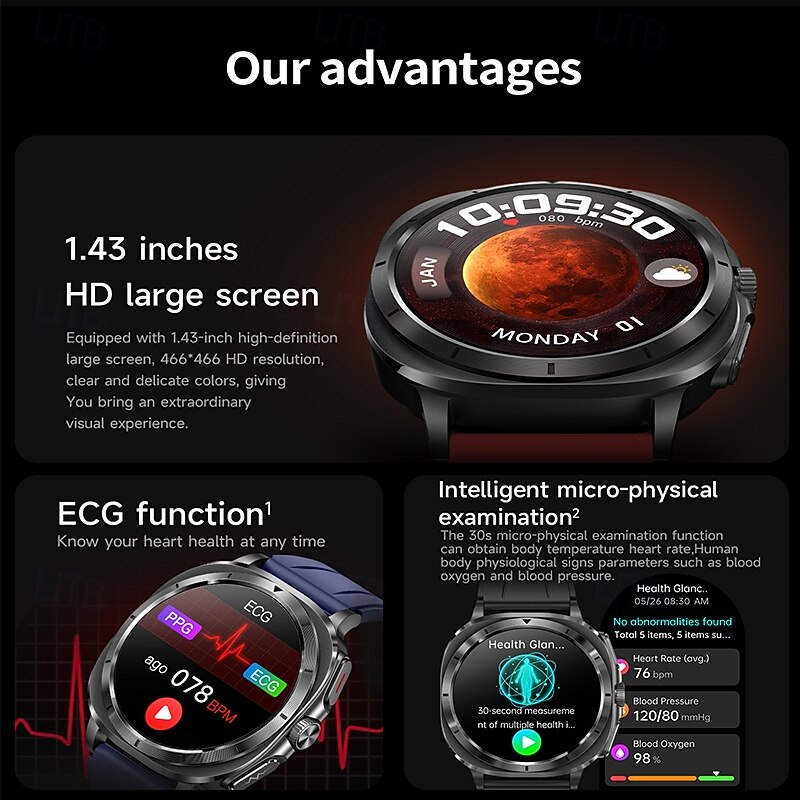 $57.49 - iMosi ET492 Smart Watch 1.43 inch Smartwatch Fitness Running Watch Bluetooth ECG+PPG Temperature Monitoring Pedometer Compatible with Android iOS Women Men Hands-Free Calls Waterproof Media Control 2025. Shop for cheap Smartwatch online? Buy at lightinthebox.com on sale today!