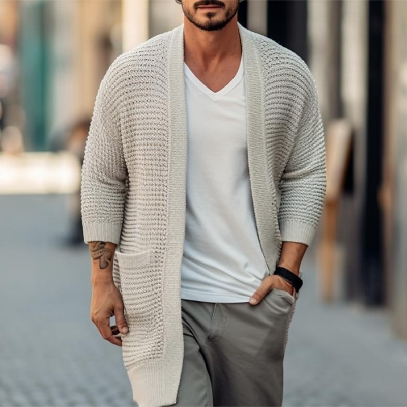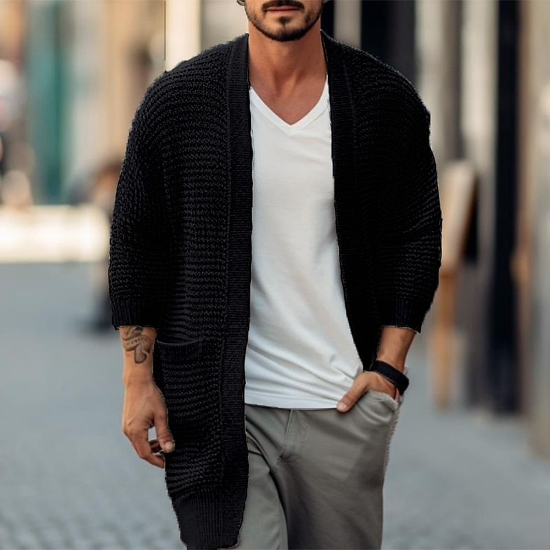 More information about Men's Sweater Cardigan Sweater Ribbed Knit Long Pocket Knitted Plain Open Front Warm Ups Modern Contemporary Daily Wear Going out Clothing Apparel Winter Autumn Black White S M L