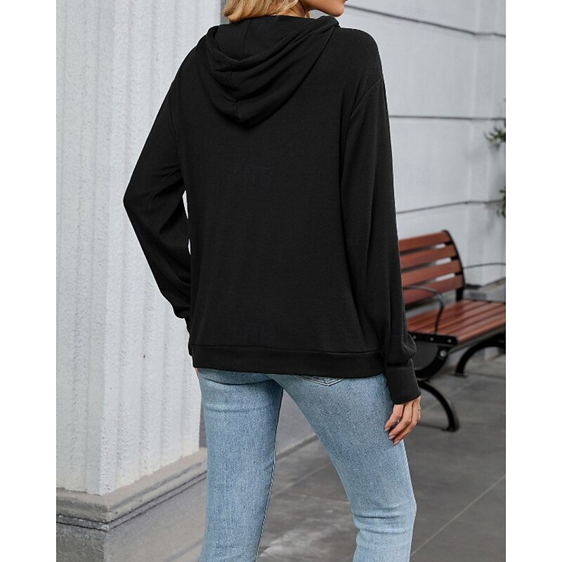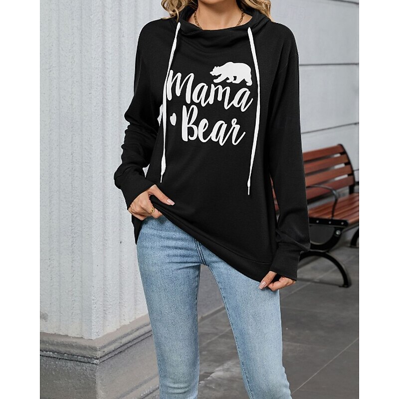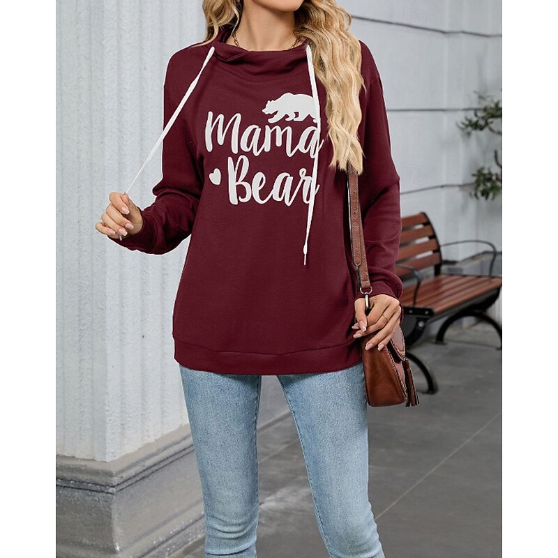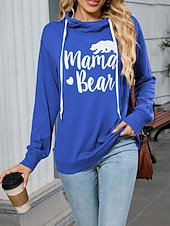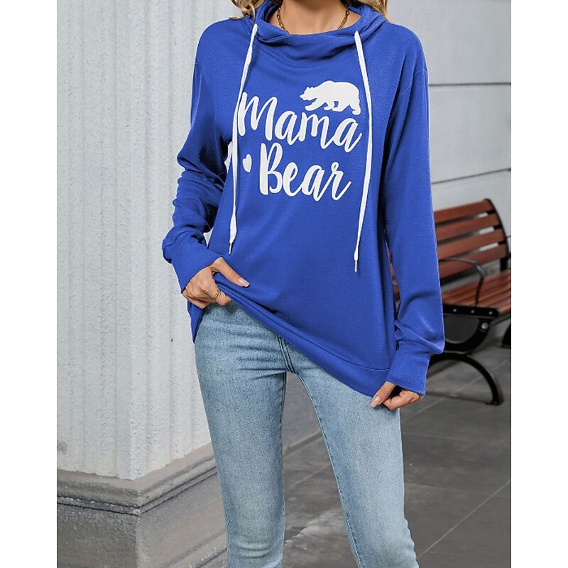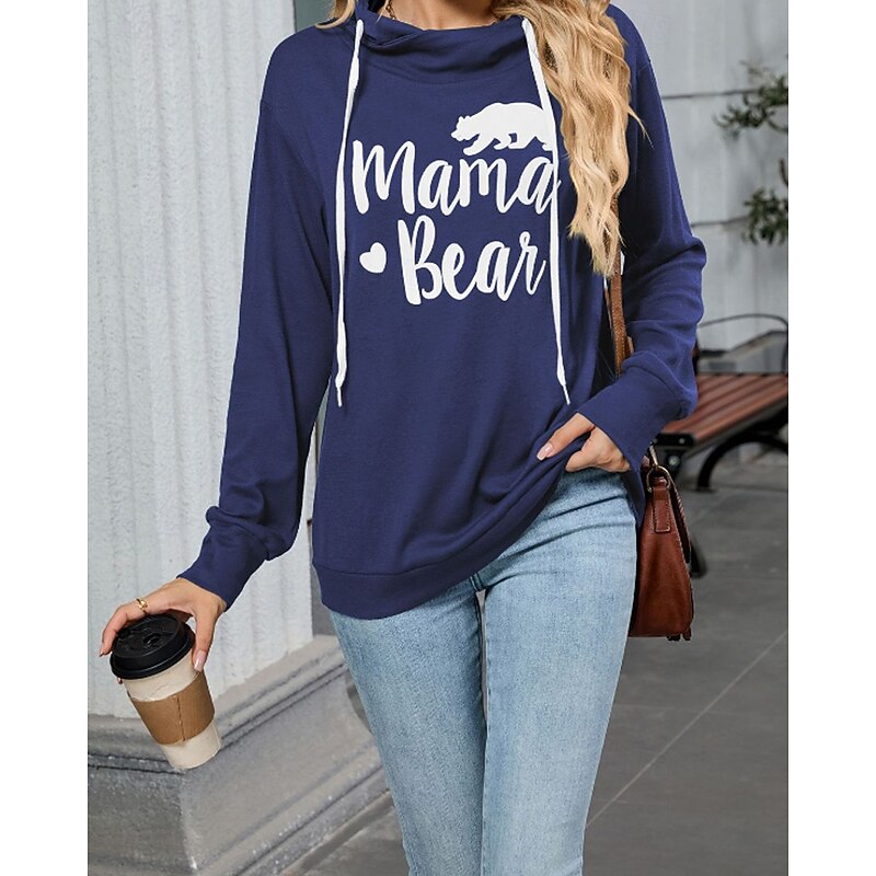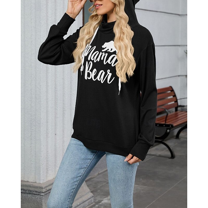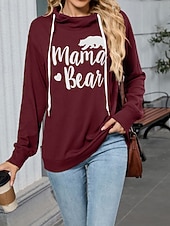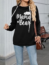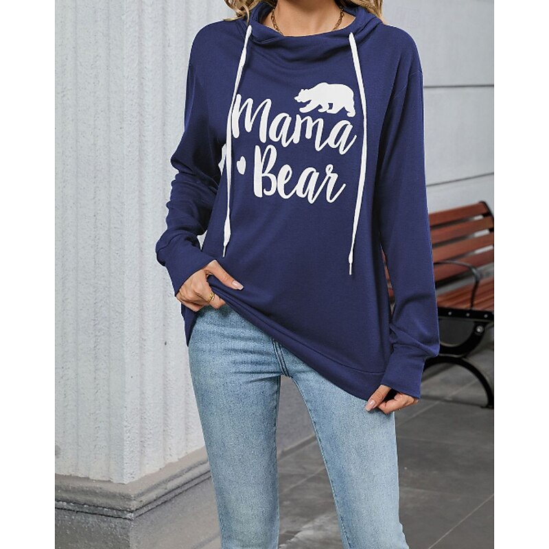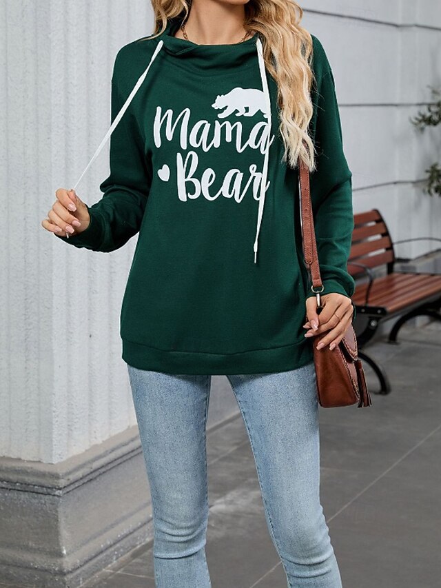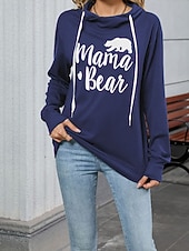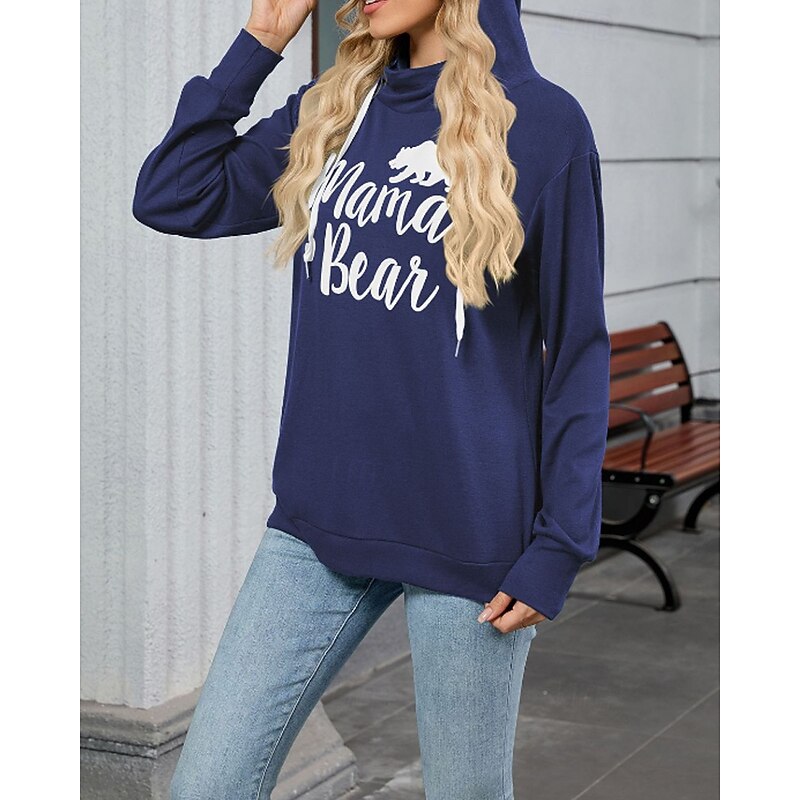 More information about Women's Pullover Hoodie Sweatshirt Letter Streetwear Casual Long Sleeve Hooded Regular Tops Holiday Going out Print Black Wine Navy Blue Blue Dark Green Fall Winter