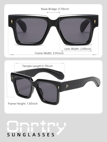Onrtry Thick Square Frame Sunglasses for Women Men Trendy Chunky Rectangle Sun Glasses Black Shades UV Protection 5