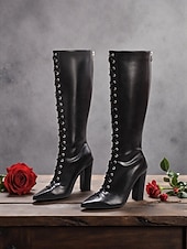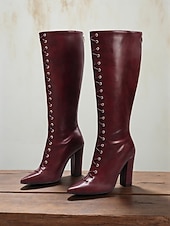 More information about Women's Burgundy High Heel Knee-High Boots Lace-Up- Pointed Toe Stiletto Boots for Formal and Party Wear