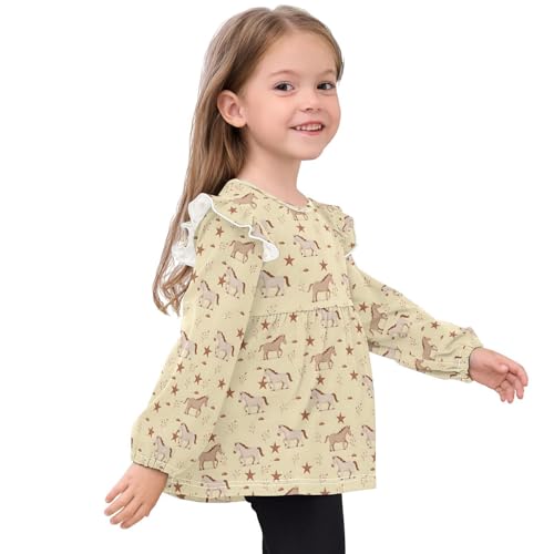 Horse Star Girls Shirts Cotton Long Sleeve Ruffle Toddler Tee Tops 4