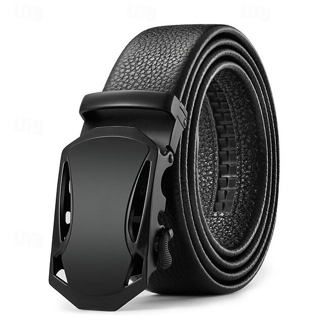 Highlights [Fabric]: Crafted from high-quality faux leather, this men's belt offers a smooth and sleek texture, providing a stylish and modern aesthetic. The durable leather-like material ensures longevity and reliable performance. [Silhouette]: Designed as a casual waist belt, it seamlessly blends into both formal and everyday outfits, providing versatility and practicality for various occasions. [Design Highlights]: The belt features an innovative ratchet buckle system, allowing for easy adjustability and a secure fit. The sophisticated black finish adds a touch of elegance, while the iron material enhances durability and style. [Occasions]: Ideal for daily wear and outdoor activities, this belt is a versatile addition to any wardrobe. Its classic design and practical functionality make it suitable for a range of settings, from casual outings to more polished events. [Size Information]: Available in a convenient one-size option, the belt is designed to accommodate a variety of waist sizes, ensuring a comfortable fit for most individuals.