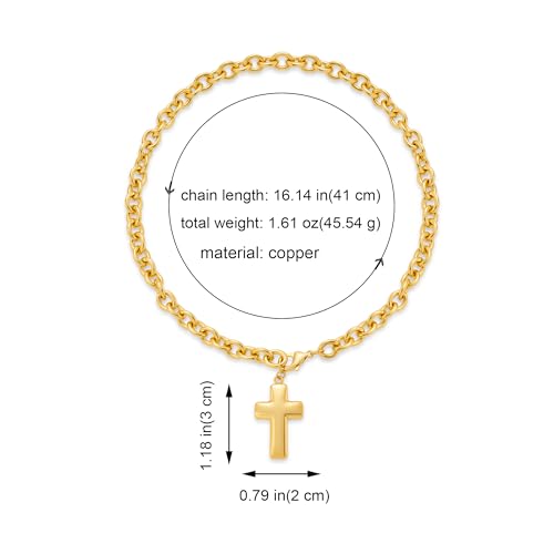 • Gold Chunky Cross Choker Necklace: This stylish cross pendant necklace for women features 1 thick gold chain link necklace(16.14''Length), 1 gold cross pendant(1.18''Height*0.79''W), 1 effortless lobster clasp. Wearing this distinctive chunky cross necklace, you'll shine like the brightest star in the crowd