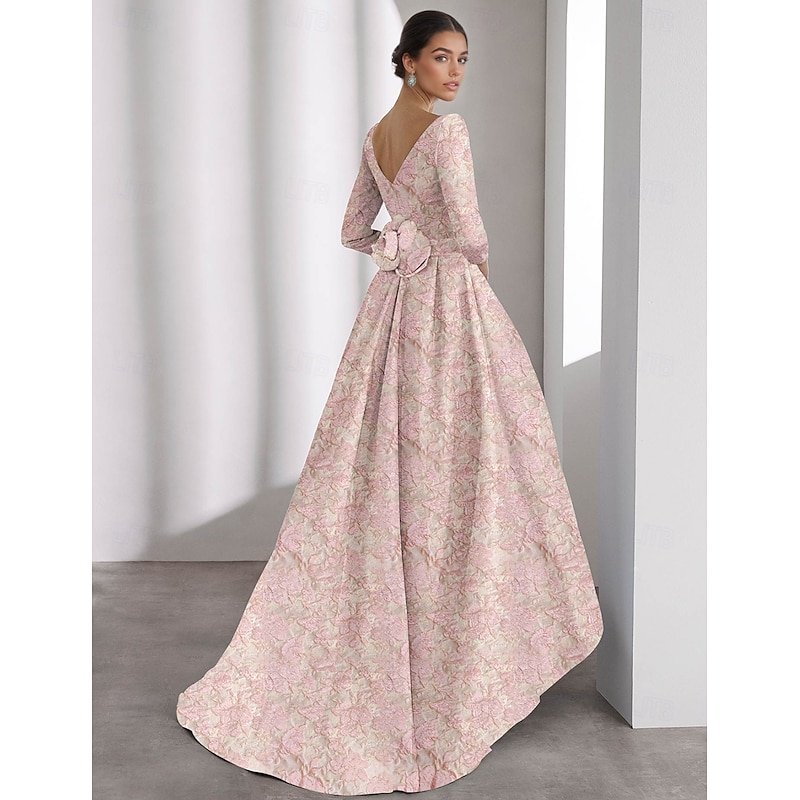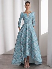 More information about A-Line Cocktail Dresses Elegant Dress Formal Wedding Guest Asymmetrical Short Sleeve V Neck Nylon with Floral Print Pocket Wedding Guest Dress