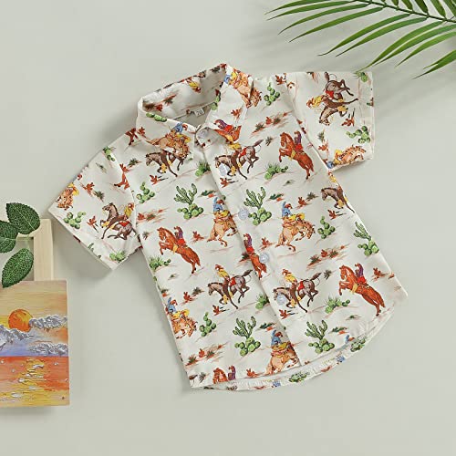 Western Baby Boy Clothes Cow Print Shirts Short Sleeve Button Down Lapel Neck Tops Summer T-Shirt 6M-4T 3