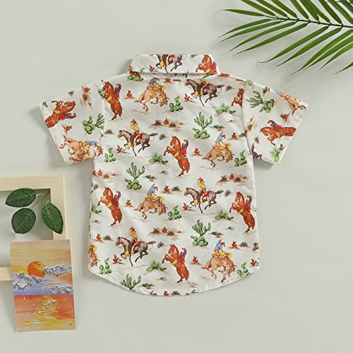 Western Baby Boy Clothes Cow Print Shirts Short Sleeve Button Down Lapel Neck Tops Summer T-Shirt 6M-4T 2