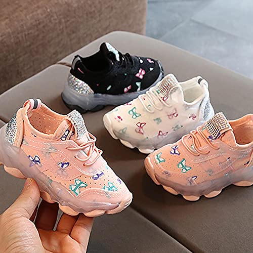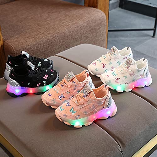 Boys Girls LED Sneakers Children Butterfly Print Lacing Breathable Soft Shoes Light Luminous Sport Shoes 6