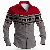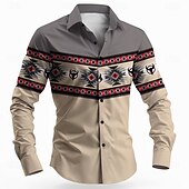 Men's Aztec Bull Ethnic Shirt Button Up Shirt Long Sleeve Vintage Retro Outdoor Casual Spring Fall Turndown 3D Print Collared Shirts Red Green Gray 7