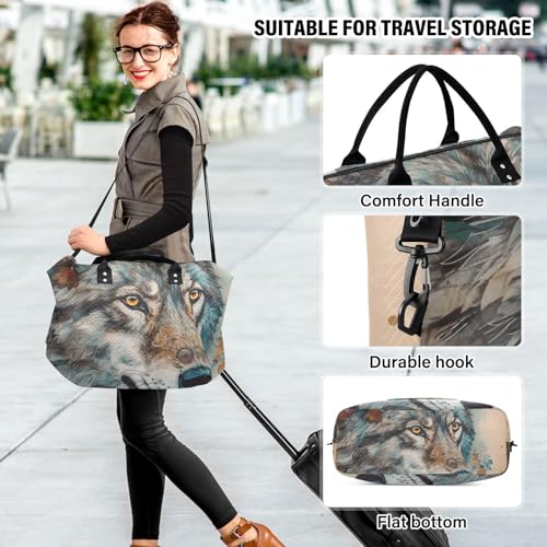 Large Travel Duffel Bag, Wolf Head Closeup Sports Tote Gym Bag, Shoulder Weekender Overnight Bag for Women Men, Carry On Luggage with Toiletry Bags 7
