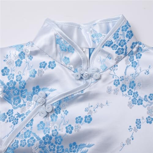 Toddler Girl Chinese Calendar New Year Dress Kid Short Sleeve Stand Up Collar Cheongsam Baseball Smocked Dress 6
