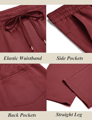 HOT ! COOFANDY Men's Christmas Pants Regular Fit Flat Front Casual Pants Expandable Waist Chino Slack Trousers Wine Red