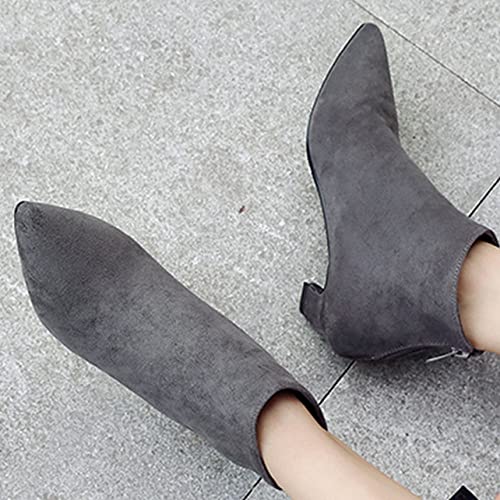 UniqueStride Womens Kitten Heels Ankle Boots Faux Suede Pointed Toe Booties Back Zipper Short Boots 5