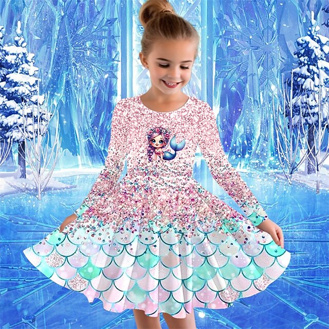 More information about Girls' 3D Cartoon Mermaid Dress Long Sleeve Summer Spring Vacation Daily Holiday Princess Beautiful Sweet Kids 4-12 Years Casual Dress A Line Dress Knee-length Regular Fit