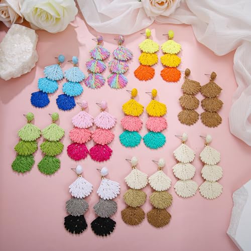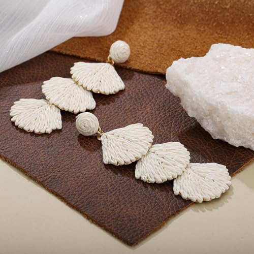 HOT ! Raffia Shell Earrings for Women, Summer Beach Vacation Jewelry, Lightweight Handmade Dangle Earrings