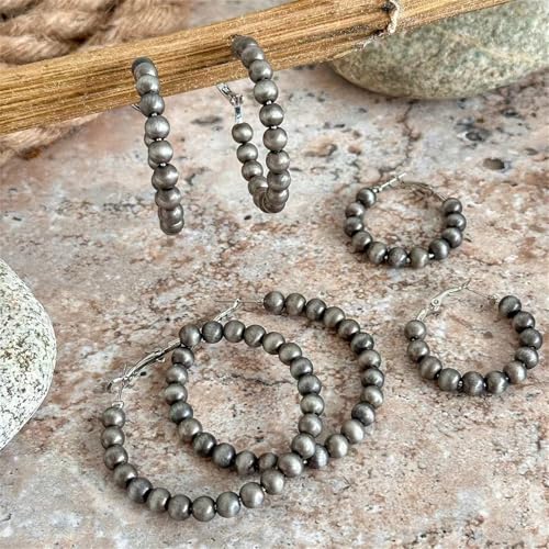 • PACKAGE CONTENTS: Set includes 3 pairs of vintage-inspired hoop earrings featuring delicate pearl beads and Western Navajo-inspired designs