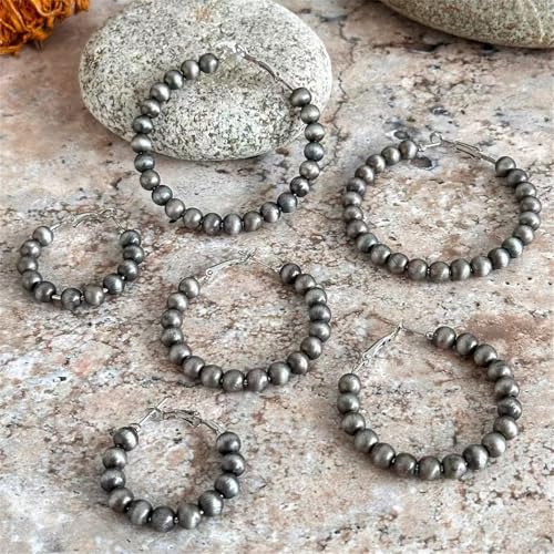 HOT ! Dreuyet 3 Pairs Western Navajo Hoop Pearl Earrings for Women Vintage Cowgirl Beaded Pearl Earrings Tribe Western Bohemian