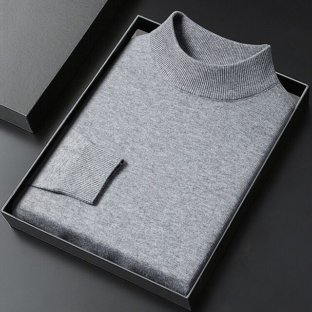 More information about Men's Turtleneck Sweater Pullover Sweater Jumper Jumper Ribbed Knit Regular Tops Knitted Plain Mock Neck Keep Warm Modern Contemporary Daily Wear Going out Clothing Apparel Fall Winter Black White S
