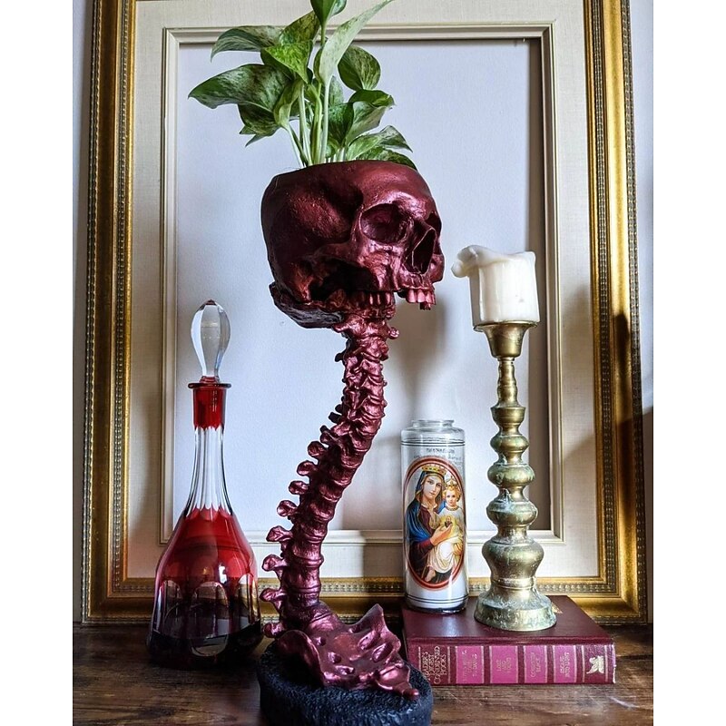 Halloween Skull Planter & Spine Stand, Resin Skull Head Flower Succulent Cactus Planter Pots,or Home Office Desk Decorations Halloween Scene Statue Sculpture Decorations 1