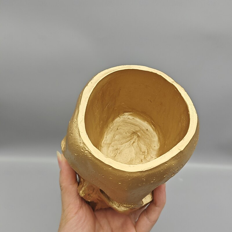 Highlights - Unique and Personal Design: The skull flower pot is inspired by skulls, creating a unique and personal aesthetic. Its lifelike simulation of skull modeling gives it a mysterious and distinctive appeal. - Multi-functional: This flower pot doubles as an interior decoration, adding personality and unique charm to any room. It is suitable for various small plants, such as succulents and cacti, making it perfect for home or office use. It brings a touch of spooky and fun atmosphere to any space. - High Quality Materials: Made from high quality resin material, this skull flower pot is exceptionally durable and water-resistant. It is designed to withstand breakage or deformation, ensuring its perfect appearance and function for a long time. - Meticulous Craftsmanship: Each skull pot is intricately carved and hand-painted, with every detail carefully polished to enhance its realism and exquisiteness. Its smooth and delicate surface provides a comfortable touch, creating a sense of high quality. - Flexible Collocation: The black color of the skull flower pot effortlessly blends with various decorative styles, such as modern, vintage, or nostalgic. Whether placed on a bookshelf, table, or balcony flower bed, it instantly creates a distinctive atmosphere and catches attention.