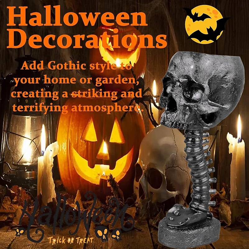 Halloween Skull Planter & Spine Stand, Resin Skull Head Flower Succulent Cactus Planter Pots,or Home Office Desk Decorations Halloween Scene Statue Sculpture Decorations 11
