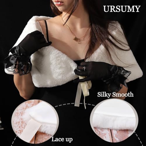 HOT ! Ursumy Women's Wedding Shawl Faux Fur Wraps Bridal Fur Stole Fur Scarf with Rhinestones Brooch for Bride and Bridesmaids (White)