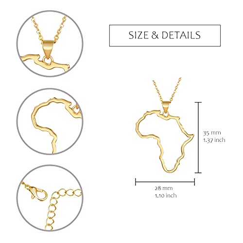 Women's Minimalist Africa Map Pendant Necklace, Trendy Personalized Africa Motherland Continent Outline Necklaces Chain Length 18" Extension Chain 2" ( 18K Gold and Silver Plated both Choice, Jewelry with Gifts Box) 5