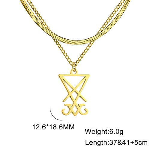 HOT ! EUEAVAN Sigil of Lucifer Pendant Necklace Stainless Steel Satanic Symbol Pendant Necklace Seal of Satan Lucifer Pendant Pagan Wiccan Jewelry Religious Necklace