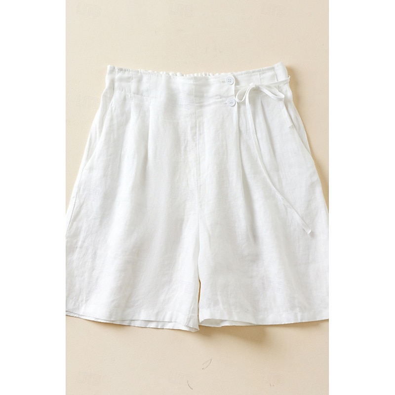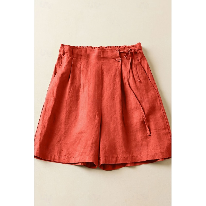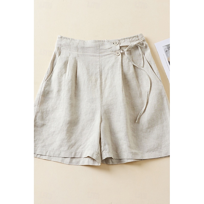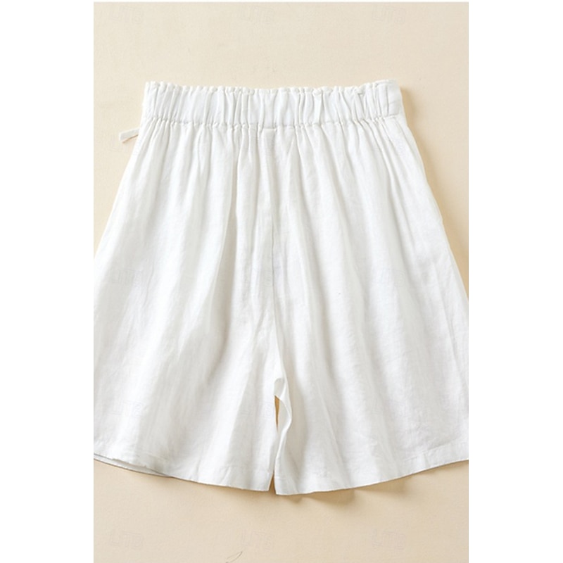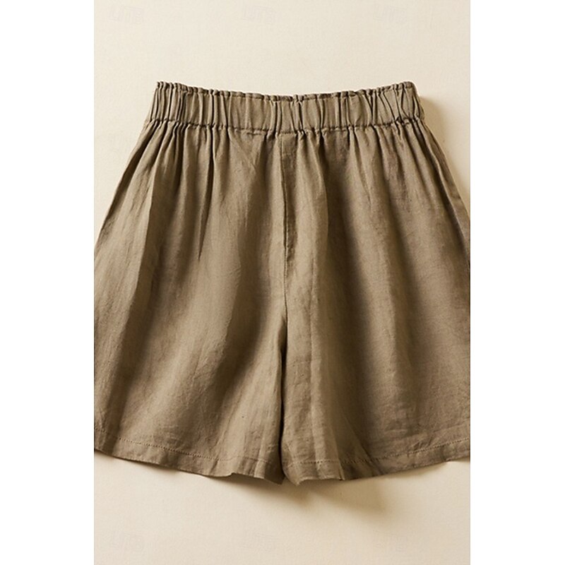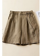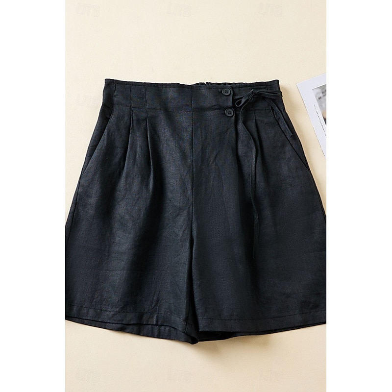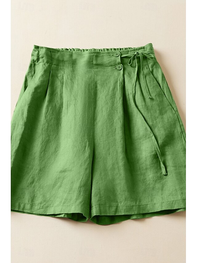 More information about Women's Linen-Inspired Shorts Shorts Slacks Streetwear Casual Short Natural Plain Pocket Elastic Waist Outdoor Comfortable Street Going out Magenta Black White Green Summer Regular Fit