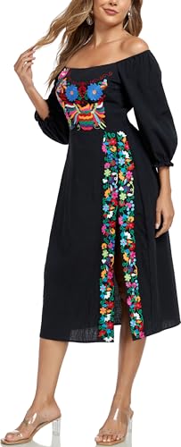 YZXDORWJ Women's Mexican Dress Boho Embroidered Summer Casual Off Shoulder Short Vacation Dress 6