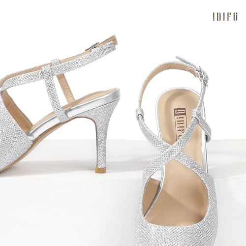 HOT ! IDIFU IN3 Womens Closed Pointed Toe Heels Low Stilettos Pumps Slingback Adjustable Cross Strap Dress Shoes for Women Wedding Party Prom Evening Dressy Comfortable Sexy Trendy Pumps Shoes