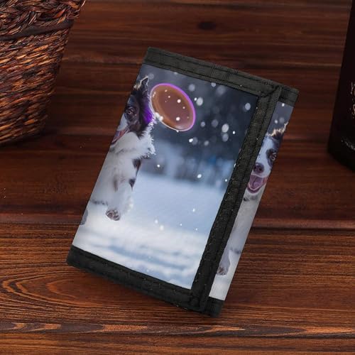 HOT ! Running Border Collie Trifold Wallets Lightweight RFID Blocking Wallet Credit Card Holder Custom Gifts for Men Women