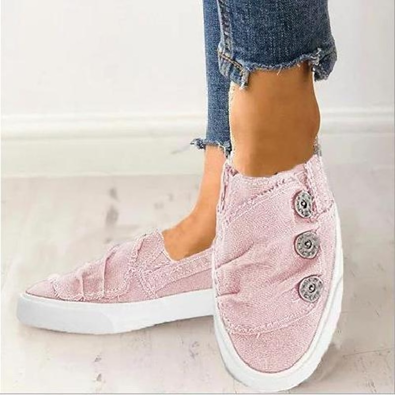 Casual Slip-On Canvas Sneakers for Women with Decorative Button Detail – Comfortable Everyday Footwear for Spring, Summer, and Relaxed Outings