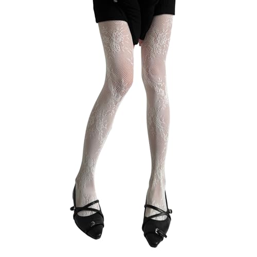 HOT ! Women Vintage Hollowed Out Lace Tights Stockings Aesthetic Elegant Flower Patterned See Through Mesh Pantyhose
