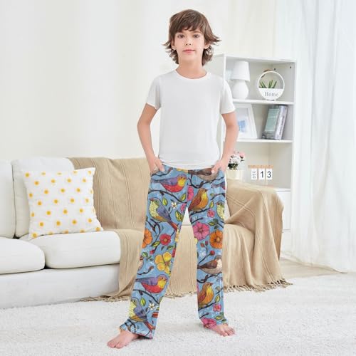 Colorful Flowers Birds Boys Long Pants Soft Trousers Elastic Waist Kids Lounge Bottoms with Pockets S-XL 4
