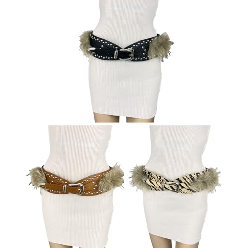 Studded Waistband for Women Elegant Furred Plush Luxurious Belt Maillard Color Retro Girdle Belt Stylish Punk 3