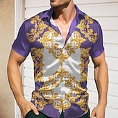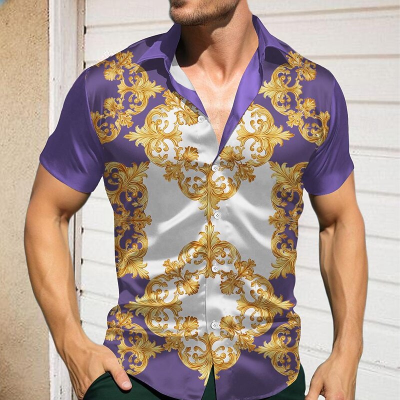 More information about Men's Pattern Shirt Button Up Shirt Short Sleeve Casual Holiday Summer Spring Turndown Print Blue Purple Green Drak Red