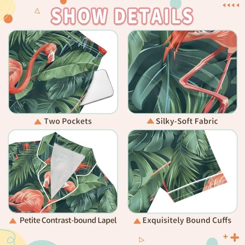 More information about ALAZA Tropical Retro Flamingo Palm Leaves Green Pajamas Satin Pajama Set Short Sleeve Button Down Sleepwear