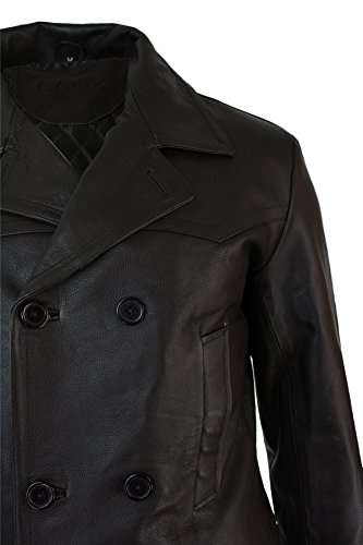 More information about Mens Real Leather 3/4 Double Breasted Pea Coat Sherlock Sailor Classic